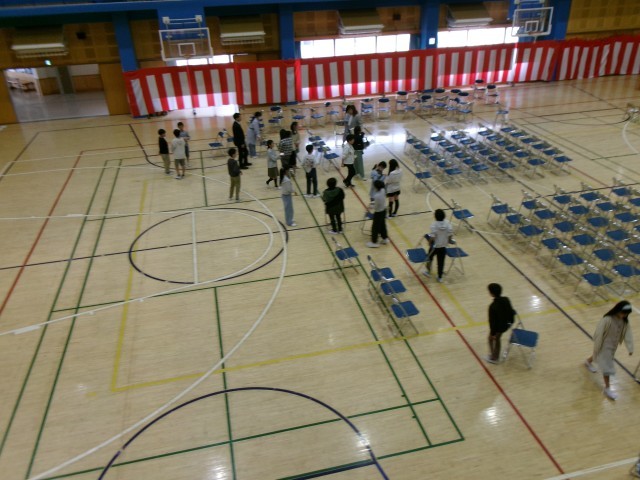 体育館、昇降口、1年生の教室などの掃除や準備を行いました。