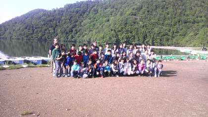 湯ノ湖にて、集合写真。