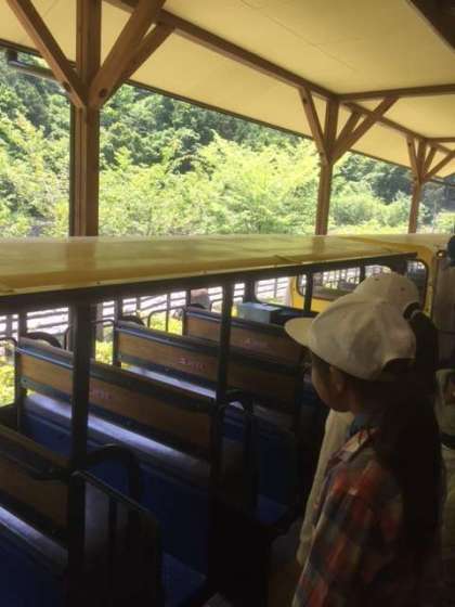 なかなか乗ることのないトロッコに乗れるのが嬉しそうです。