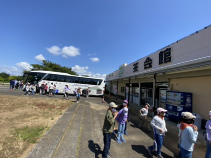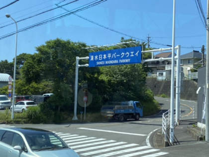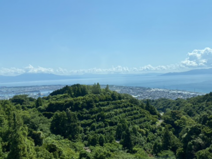 海抜数メートルの清水漁港から一気に山を登り、お茶会館に到着です。