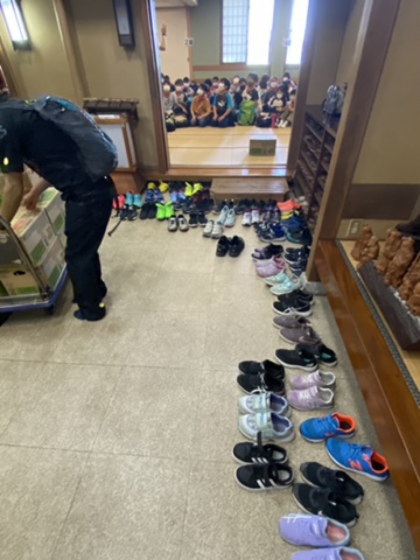 出入口の狭い部屋に集まる際にも、ていねいに靴を並べています。相手意識、いいですね。