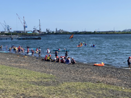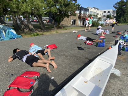 ライフジャケットを脱いだ子は、アスファルトから下には行きません。