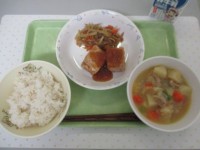 〈メニュー〉・大豆ピラフ・6年生のタンドリーチキン・野菜のスープ・イタリアン...