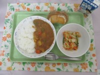 〈メニュー〉・ポークカレーライス・温野菜の胡麻ドレッシング・焼きりんご・牛乳〈八...