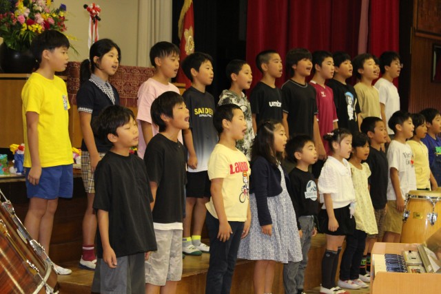 10月4日(土)に開校150周年記念式典が開催されました。第一部では、「上川口小の昔と今」を動画で振り返り、お祝いのビデオメッセージを視聴したりしました。全校児童による音楽発表では、1~6年生の心のこもった精一杯の歌声と楽器の演奏が、式典に花を添えてくれました。