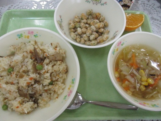 ★とりごぼうピラフ ★白菜スープ ★ポップビーンズ