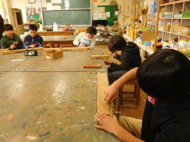 桜の廃材を活用した楽器作り(6年生)