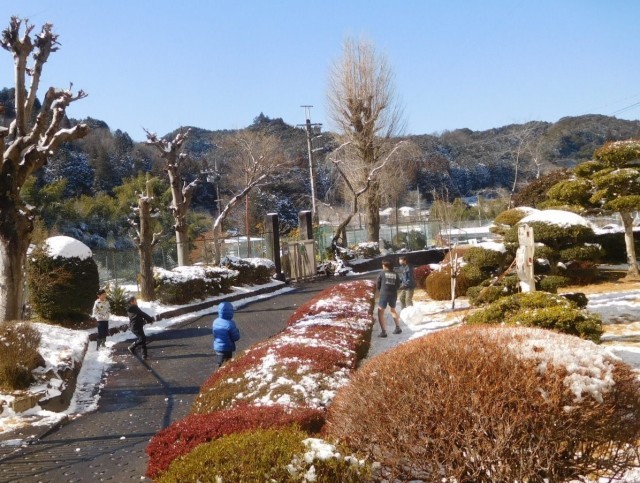 2月9日(月)は前日の雪が残り、子どもたちは中休みの時間に雪遊びを楽しみました。校舎前の庭や通路で、2チームに分かれて雪玉を作って投げ合っていました。遊んでいるあいだは寒さや冷たさは気にならず、休み時間はあっという間に過ぎました。