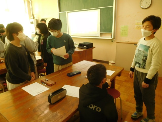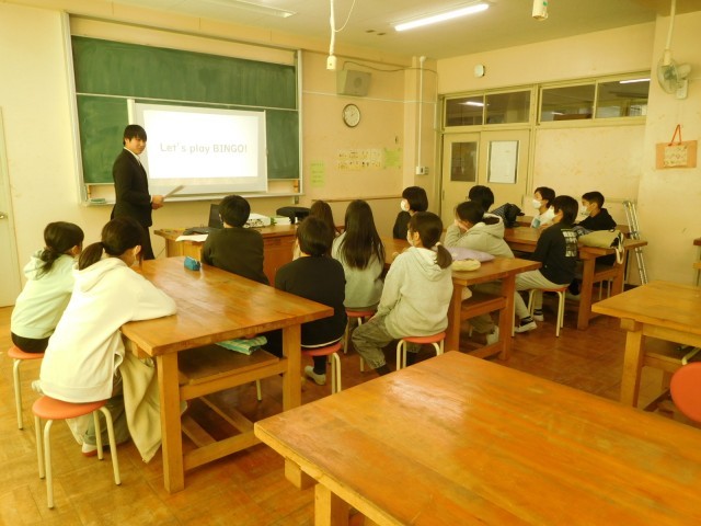 次に、中学校の先生から英語の授業を受けました。中学校の英語授業の体験ということで、中学校英語のスタートになる内容でした。