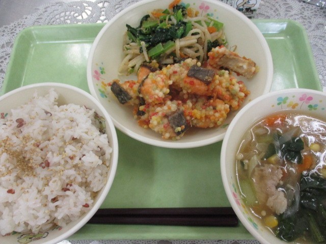 ★氏照ごはん ★魚の桜風あられ揚げ ★小田原かまぼこのごま和え