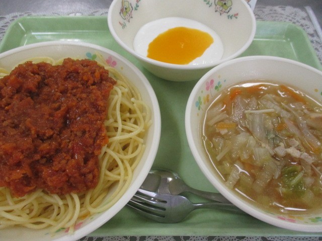 3月19日の給食 公開日 2026/03/19 更新日 2026/03/19 給食室より 今日の献立 ★スパゲティミートソース ★白菜スープ ★ヨーグルトのオレンジソース ★牛乳 今日の給食は、皆さんの大好きなスパゲティミートソースです。ミートソースは、豚ひき肉とみじん切りの野菜をよく炒め、トマトや調味料を入れて、煮込んで作ります。 いいね(0)