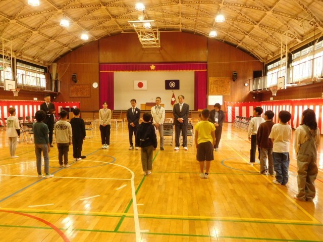 令和8年度スタートの日、子ども達は元気に登校しました。始業式では、新しく来られた教職員を紹介し、各学年の担任の先生を発表しました。校長先生から、「失敗することをこわがらずに、やりたいことにどんどん挑戦しましょう」というお話がありました。