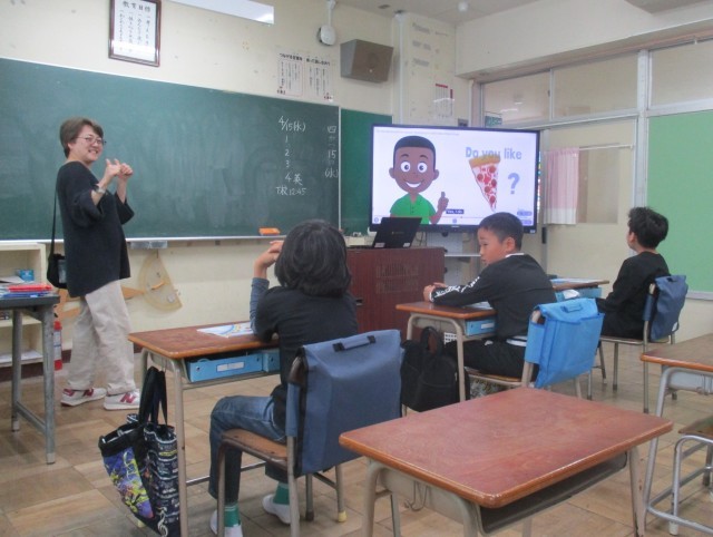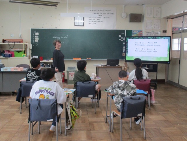 今日は3~6年生の英語の授業がありました。教室を回ってみると、子ども達はリラックスして、先生との会話を楽しみながら学習をしていました。
