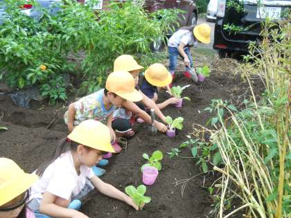 野菜を育てよう! 公開日 2015/09/11 更新日 2015/09/11 1年生の様子 1年生は冬にかけて白菜、ホウレンソウ、リーフレタス、聖護院かぶ、ひかりかぶを育てます。白菜の苗を植え、それ以外の野菜は種を蒔きました。 子ども達は「おおきな、おおきなかぶになーれ」と言いながらかぶの種を蒔いていました。 いいね(0)