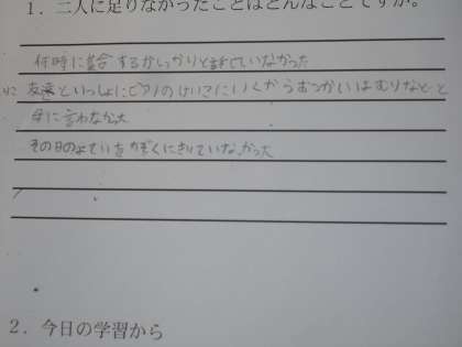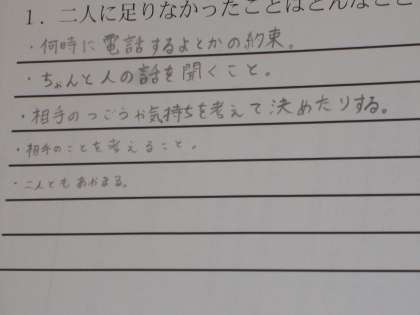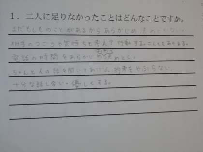 話し合いの後、二人への足りなかったことはどんなことか、それぞれへアドバイスを考えさせました。