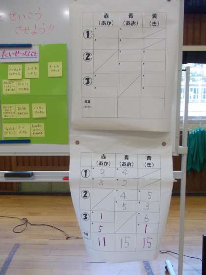 思考力を育む5 公開日 2015/10/19 更新日 2015/10/19 全校の様子 1回戦が終わりました。素早く集合し並びました。体育科の学習では集合離散を素早くすることは、学習時間の確保、運動量の確保に欠かせません。大切な学習姿勢です。教師の方から作戦についてのアドバイスがあり、チームごとに2回戦の作戦タイムを取りました。各チームでは一人一人が動きに対して発言していました。 いいね(0)