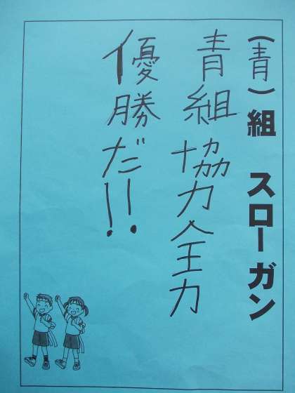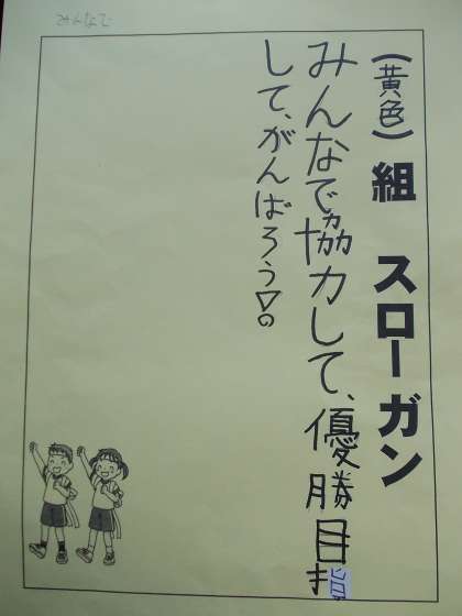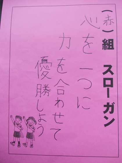各チームのスローガンです。 運動会当日の子供たちの頑張りをお楽しみください。