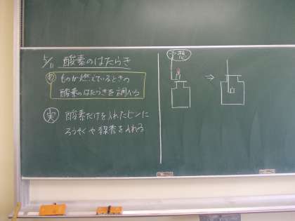 6年生理科 気体の性質今日は酸素の気体を調べます。課題をノートにとらせました。