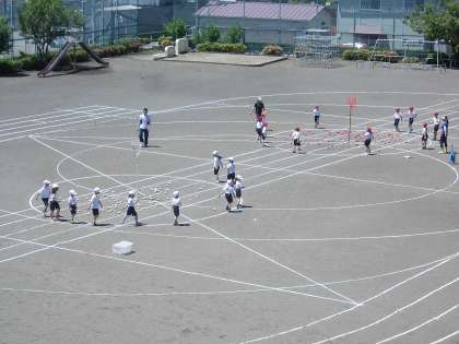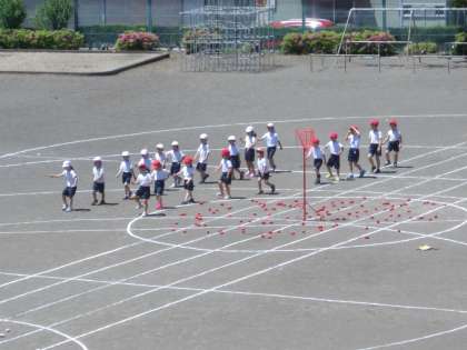 1年生2年生 体育 表現と体つくりの運動を取り入れた運動をしています。楽しくかわいい動きです。