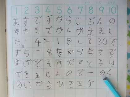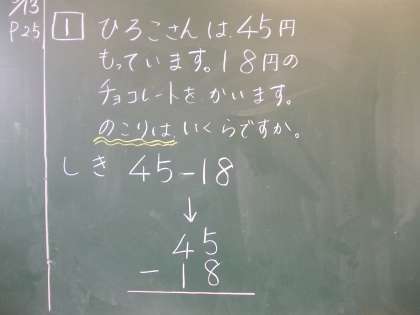 授業の様子4 公開日 2016/05/13 更新日 2016/05/13 全校の様子 2年生算数 いよいよ、くり下がりのあるひき算です。今まで習った方法で解くことができるか、考えています。 悩んでいました。解けた子には自分の言葉で解き方をまとめさせました。 おはじきやブロック等使って考えさせてみてください。 いいね(0)