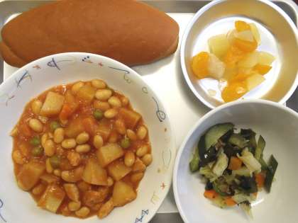 5月17日(火) 本日の給食 公開日 2016/05/17 更新日 2016/05/17 給食室より 今日の献立 ・ミルクパン ・チキンビーンズ ・わかめサラダ ・フルーツミックス ・牛乳 いいね(0)