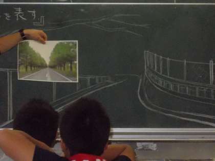 空気遠近法 近くははっきり、遠くはぼやけて色合いも淡く見える。