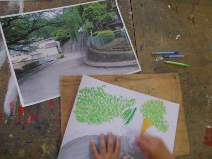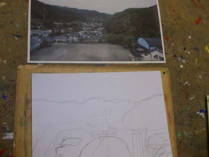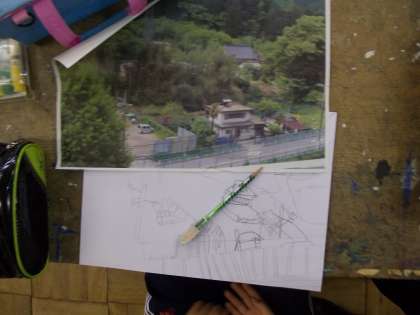 いよいよ自分の作品へ取り組みます。自分の撮った写真をもとに取り組みました。