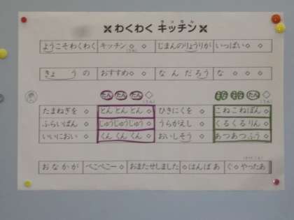 学習の様子3 公開日 2016/06/15 更新日 2016/06/15 全校の様子 子どもたちの作ったリズム遊びの後に、ハンバーグができるまでの楽しい曲に合わせてリズムをとりました。 カスタネットを使いリズムを奏でました。 いいね(0)