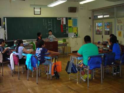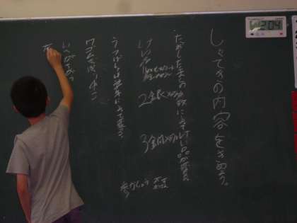 学級会 子ども祭りへ向けて、クラスの出し物について話し合っています。