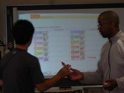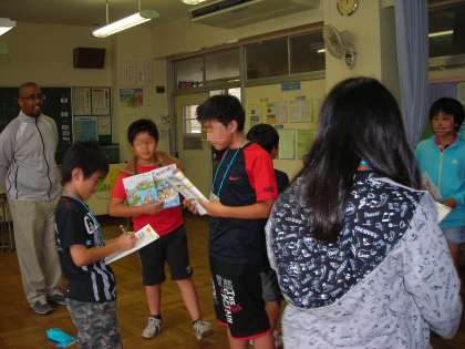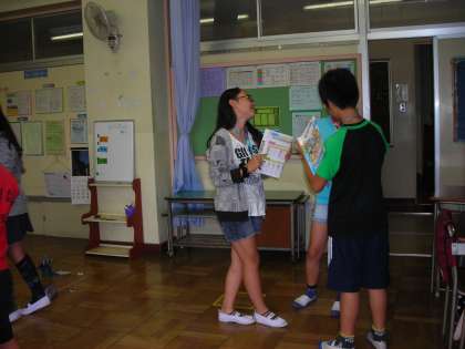 外国語活動 全員の子と会話し、誕生日を英語で教え合いました。