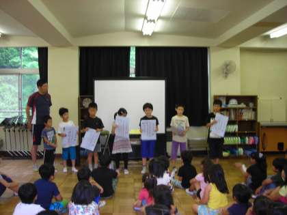 次に7月の取り組み目標を各クラスの代表の子が発表しました。