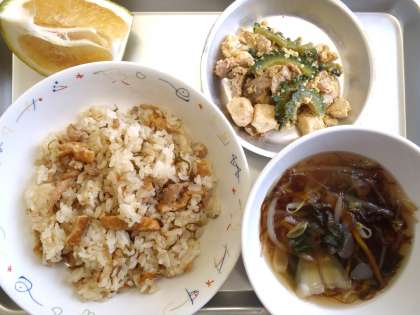 7月11日(月) 本日の給食 公開日 2016/07/11 更新日 2016/07/11 給食室より 今日の献立 ・ししじゅうし ・ゴーヤチャンプルー ・もずくスープ ・河内晩柑1/4 ・牛乳 いいね(0)