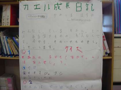 生活科 これまで生き物を飼って調べてきました。 明日1年生へ紹介します。今日は練習をしました。