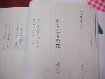 国語の学習1 公開日 2016/09/05 更新日 2016/09/05 全校の様子 詩の学習「からたちの花」 「からたちの花」の写真を見せました。イメージをつかませます。 全員で音読しました。 詩の構成を考えました。 表現の工夫を読み取りました。 一人一人が見つけていました。 いいね(0)