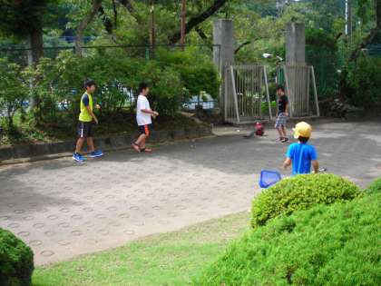 1年生は虫に夢中です。大きなバッタをつかまえる子もいました。