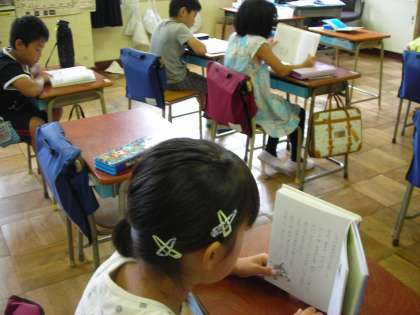 朝読書2 公開日 2016/09/07 更新日 2016/09/07 全校の様子 個人によって読む本の分野は様々です。 今年から読んだ本のページ数を記録にとり、6年間の自分の読書記録をとっていきます。 いいね(0)