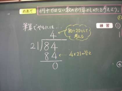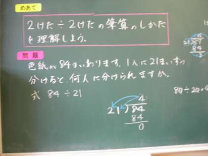 2けたのわり算をしています。 定規を使いしっかり線を入れています。 大切な学習の仕方です。
