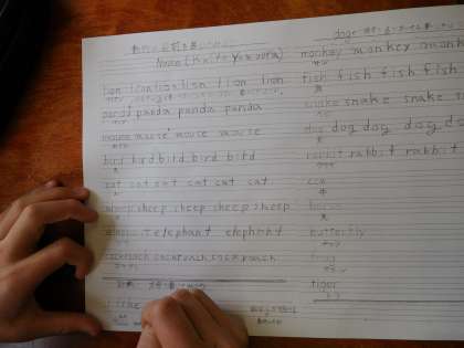 小学校ではまだしていない、英語で書く事を体験しました。
