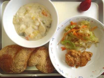 3月9日(木) 本日の給食 公開日 2017/03/09 更新日 2017/03/09 給食室より 今日の献立 ・きなこ揚げパン ・タンドリーチキン ・白菜のクリーム煮 ・和風サラダ ・いちご ・牛乳 いいね(0)