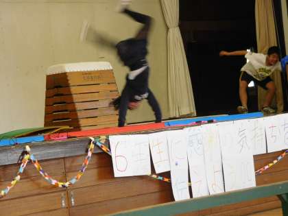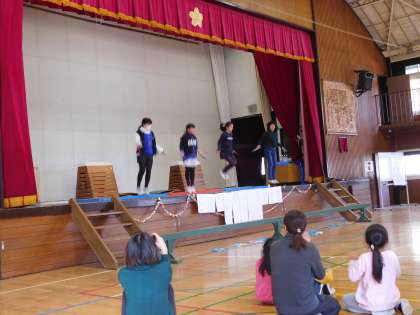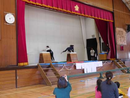 跳び箱 なわとび マット 自分の得意な技を見せました。