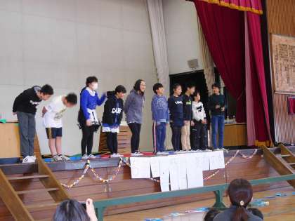 6年生を手のアーチで送り出しました。