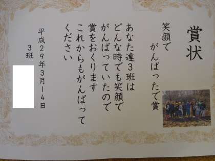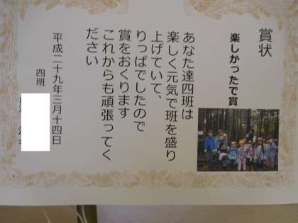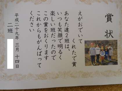 渡された賞状です。