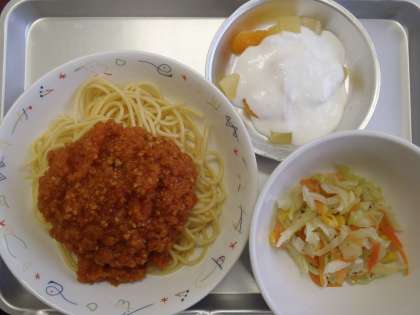 3月14日(火) 本日の給食 公開日 2017/03/14 更新日 2017/03/14 給食室より 今日の献立 ・スパゲティーミートソース ・コールスローサラダ ・フルーツヨーグルト ・牛乳 いいね(0)