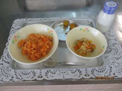 令和元年7月17日の献立 公開日 2019/07/17 更新日 2019/07/17 給食室より 今日のメニュー ※ 大豆ピラフ ※ うずらたまごのカレー煮 ※ はちみつナッツサラダ ※ 牛乳 いいね(0)