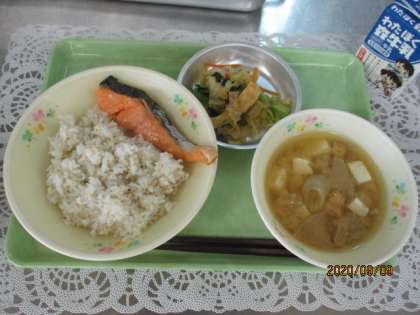 令和2年9月9日 水曜日 公開日 2020/09/09 更新日 2020/09/09 給食室より 今日のメニュー ※ ごまご飯 ※ 鮭の塩焼き ※ 豚汁 ※ 野菜のおひたし ※ 牛乳 ☆今日の豚汁は食材が少々、多かったせいか出来上がり量も多めでした。残るかなあと心配していましたが、完食でした!すばらしい!(^^)! いいね(0)