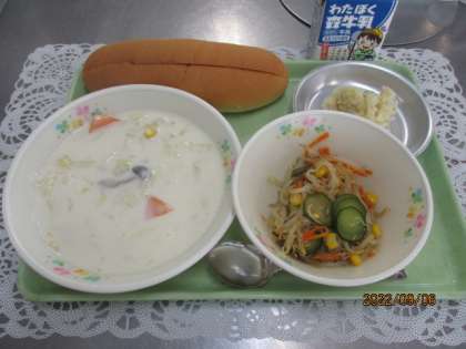マッシュサンド クリームシチュー じゃこサラダ 牛乳