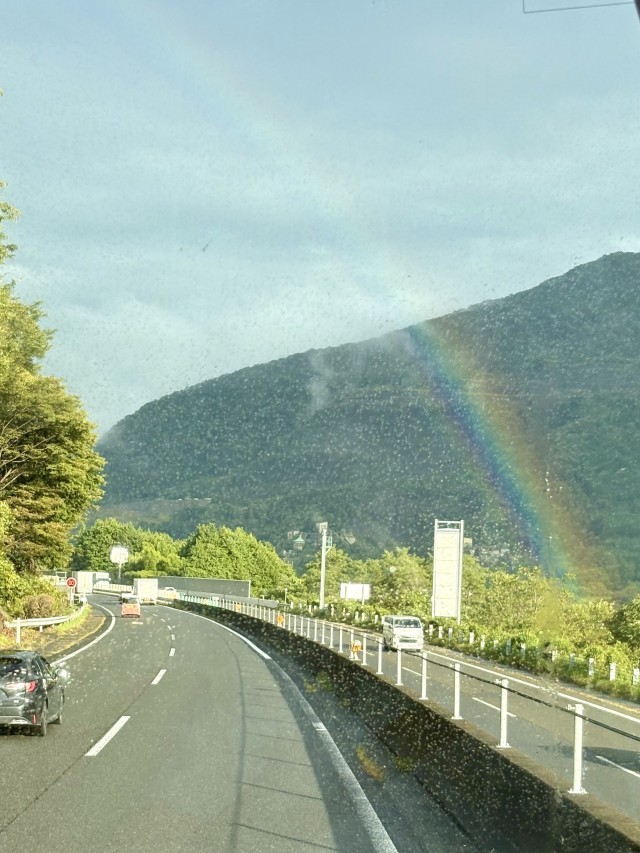 サービスエリアに入る前、虹の橋をくぐりました。3日間の移動教室を締めくくる思い出のワン・シーンとなりそうです。