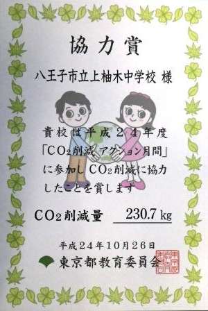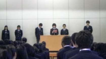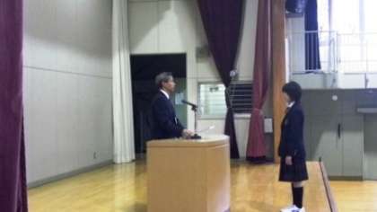 11月6日、生徒朝礼を行いました。各委員会からの報告がありました。その後、1年生が1学期に取り組みましたCO2削減アクションプランの表彰がありました。