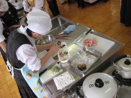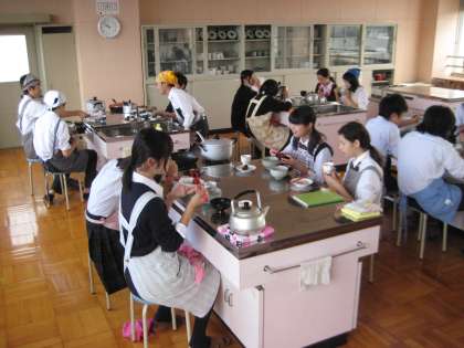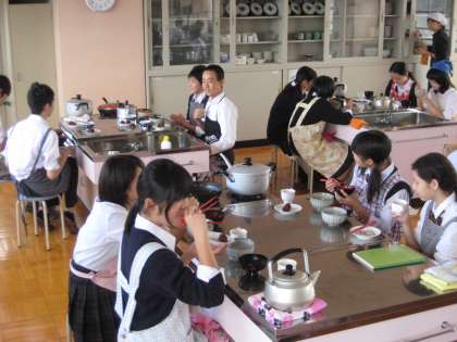 今週の家庭科授業では調理実習を行っています。昨日(16日)は1年生が豚汁、本日(17日)は2年生が親子丼、それぞれ上手にできて美味しそうです。レトルト食品も多い昨今、手作りの料理の味も大事にしたいものです。