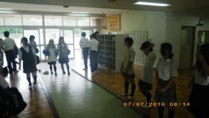 生徒会が主催しました「おはよー運動」が始まりました。生徒たちが登校する時間に、生徒会役員や学年委員が東と西の昇降口で、登校してきた生徒たちに大きな声で「おはよー」と声をかけています。大きい声でのあいさつは気持ちがよいものですね。10日(土)の学校公開の日には、PTAの方も「おはよー運動」参加してくれます。